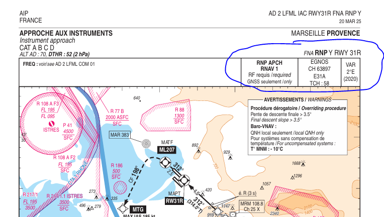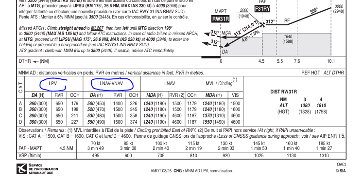 前几天有飞行员问马赛机场的RNP Y Rwy31R标准中的LPV标准不能使用,但边上的LNAV/VNAV标准能否使用?
